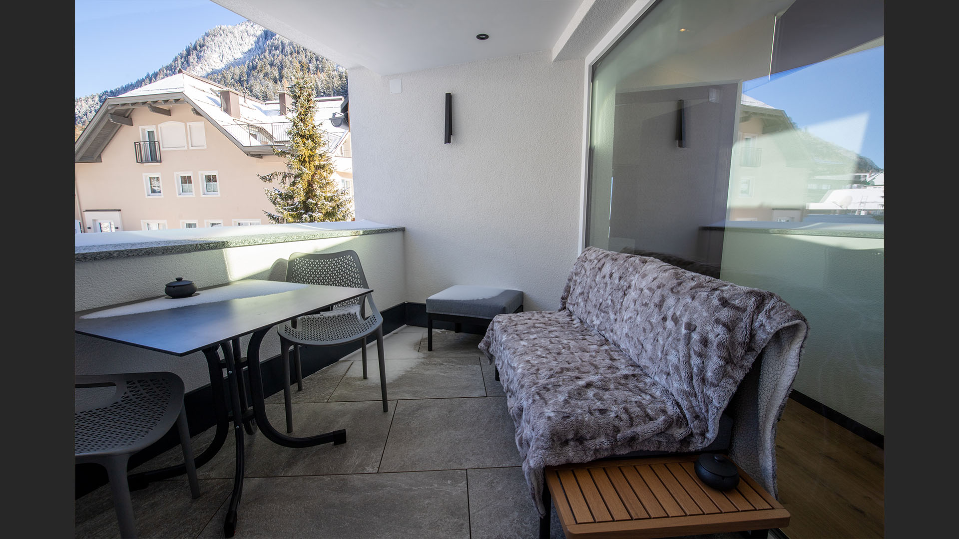 Die 104m² große Wohnung befindet sich im ersten Obergeschoß und bietet 2 Doppelzimmer und 1 Dreibettzimmer mit separatem Badezimmer. Im großzügigem Wohnbereich befindet sich eine voll ausgestattete Küche und ein großer Esstisch. 2 Zusatzbetten sind im Wohnbereich möglich. Die Besonderheiten dieses Appartements sind die großzügig gestaltete Wohnfläche und eine überdachte Terrasse.